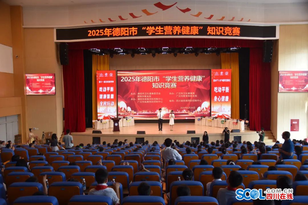 四川在线消息(德阳频道 古蓉媛)5月20日是我国第36个“5·20中国学生营养日”。当天,由德阳市卫健委、德阳市教育局主办的德阳市2025年“学生营养健康”知识竞赛在广汉市金雁小学举行。各区(市、县)卫健、教育部门分管领导、相关工作人员以及学生、学生家长和食堂从业人员共300余人参加活动。