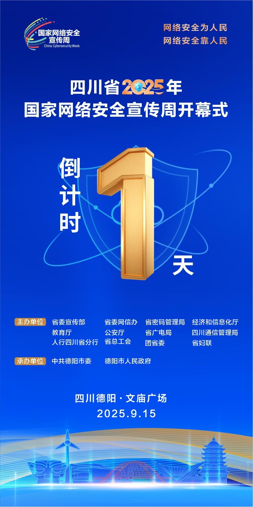 为推动网络安全意识全民普及,深化网络安全法律法规宣传贯彻,四川省2025年国家网络安全宣传周将于9月15日在德阳启动。