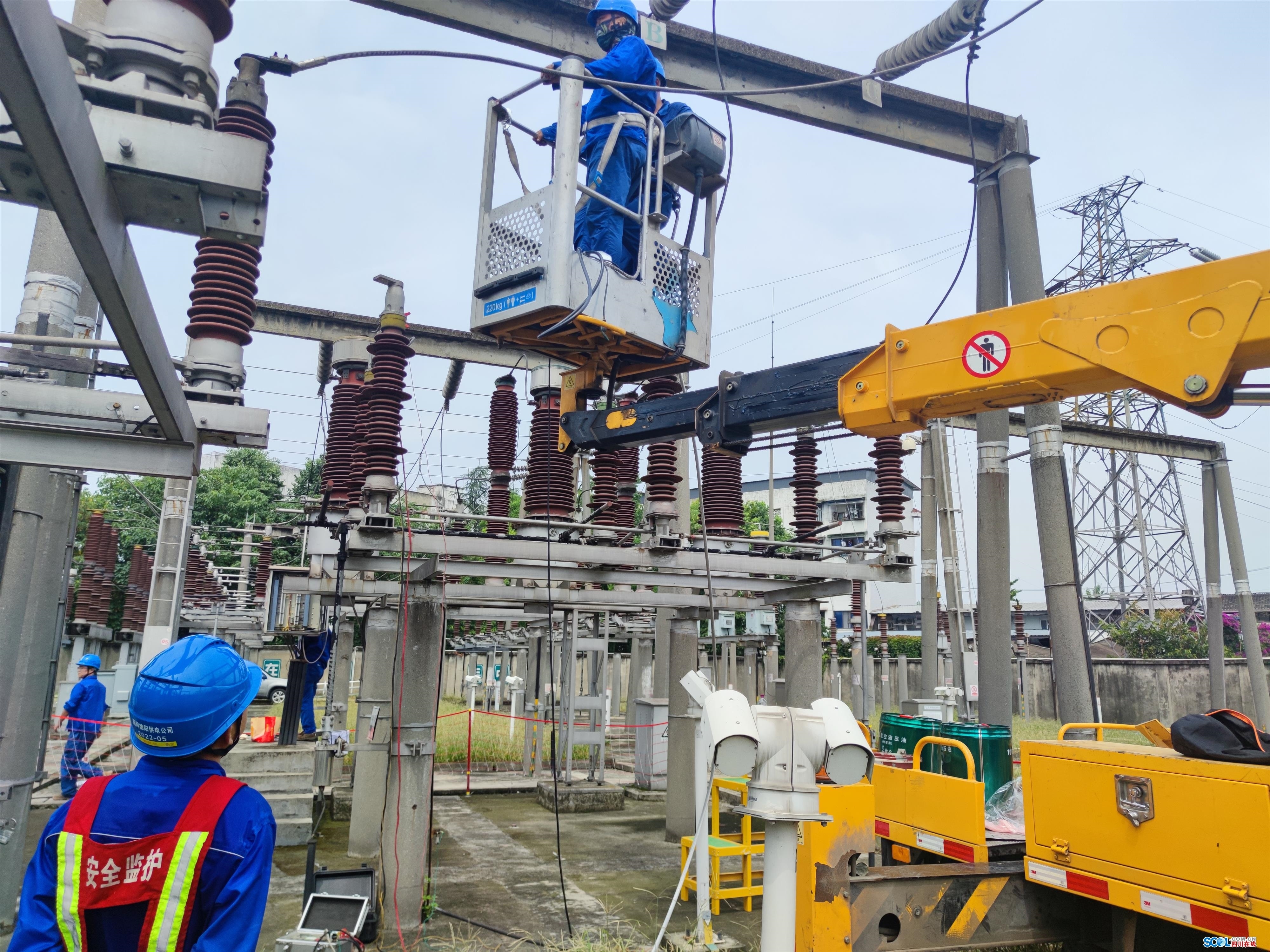 7月14日上午,作为德阳主城区电网稳定运行核心变电枢纽之一的220千伏秋月变电站,展开降温维护工作。