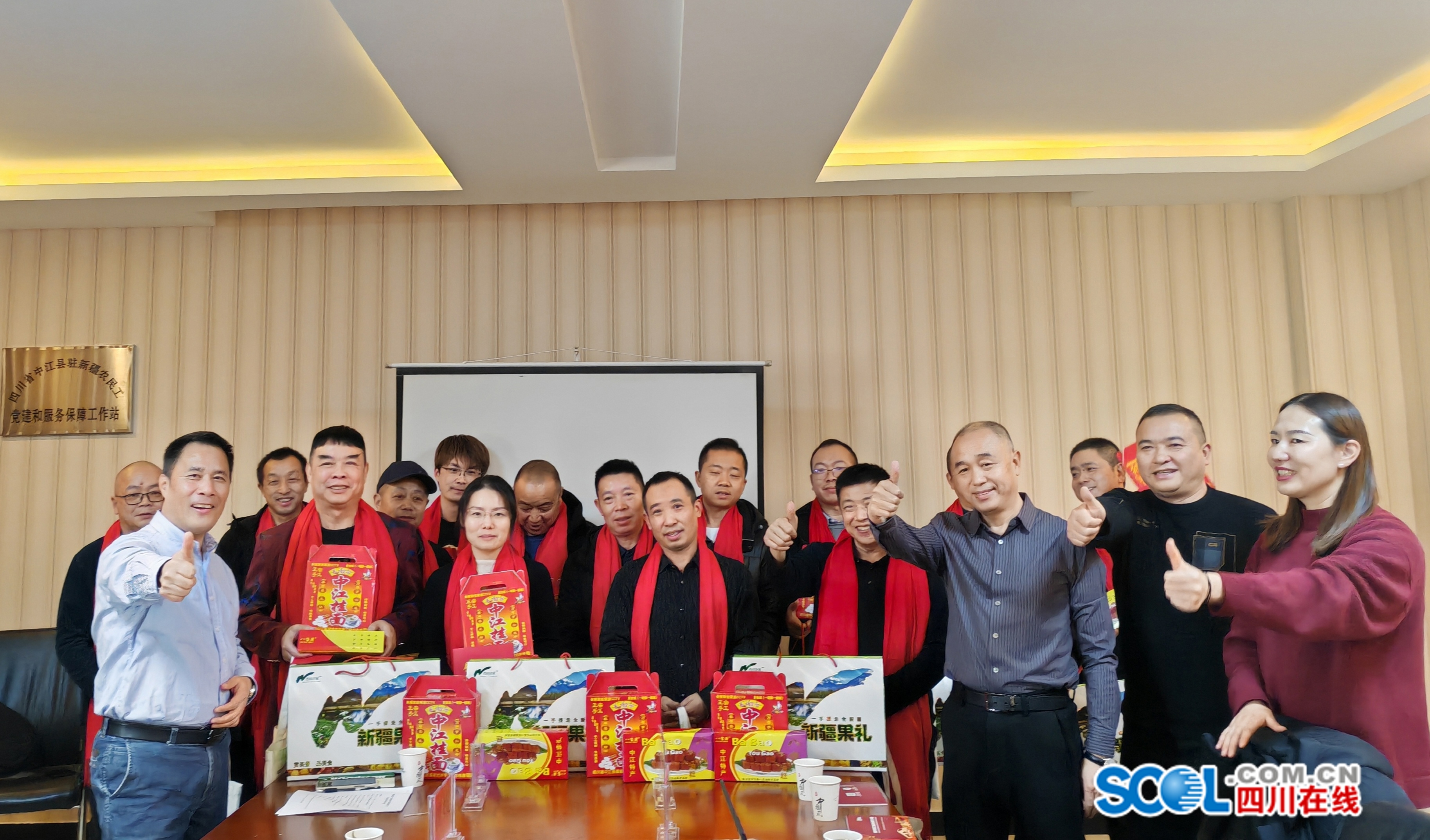 1月10日下午,考察组一行来到乌鲁木齐,在驻新疆农民工党建和服务保障工作站——新疆东川斯玛果业有限公司,与公司负责人、德阳籍农民工代表共同观看了德阳、中江城市发展宣传片,为农民工朋友们派发《德阳市农民工就业创业服务手册》、送上慰问金并开展座谈交流。座谈会上,工作站站长王龙汇报了建站以来的运行情况;王晓林向与会人员送上新年寄语,肯定了工作站取得的成效,介绍了过去一年德阳经济社会发展和农民工服务保障工作开展情况,邀请农民工朋友们常回家看看,鼓励他们返乡创业、回家发展,共创家乡建设的美好未来;农民工朋友们纷纷表达对家乡党委政府的感谢,积极分享在外打拼经历,诉说服务站为他们就业、生活、维权等方面提供的支持和帮助。农民工唐开万高兴地说,“长期在外工作,最终还是想落叶归根。看到家乡的变化如此之大,农民工就业创业如此有保障,我感到非常激动。我想今年春节就回乡看看,争取在家乡闯出一番事业。”