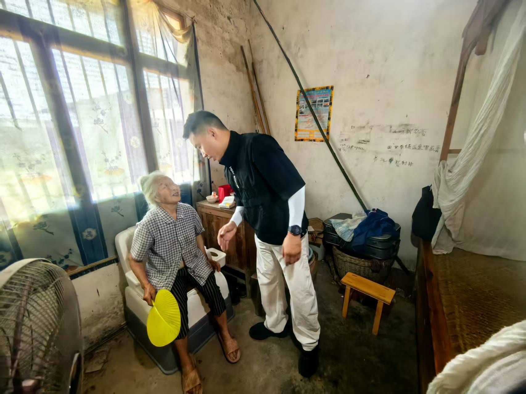吴婆婆非脱贫户、监测户,政策难覆盖。唐怡最终多方联系,为老人争取到临时救助金。并联系自来水厂优先装水管,水管通时,吴婆婆哽咽不停。还为老人购买移动坐便器,蹲在地上手把手教老人使用。此后又带队帮老人挖化粪池、清砖瓦、搭雨棚。如今老人家里灶台、厕所齐全,有了便携移动坐便器,夜里起夜不怕摔了。