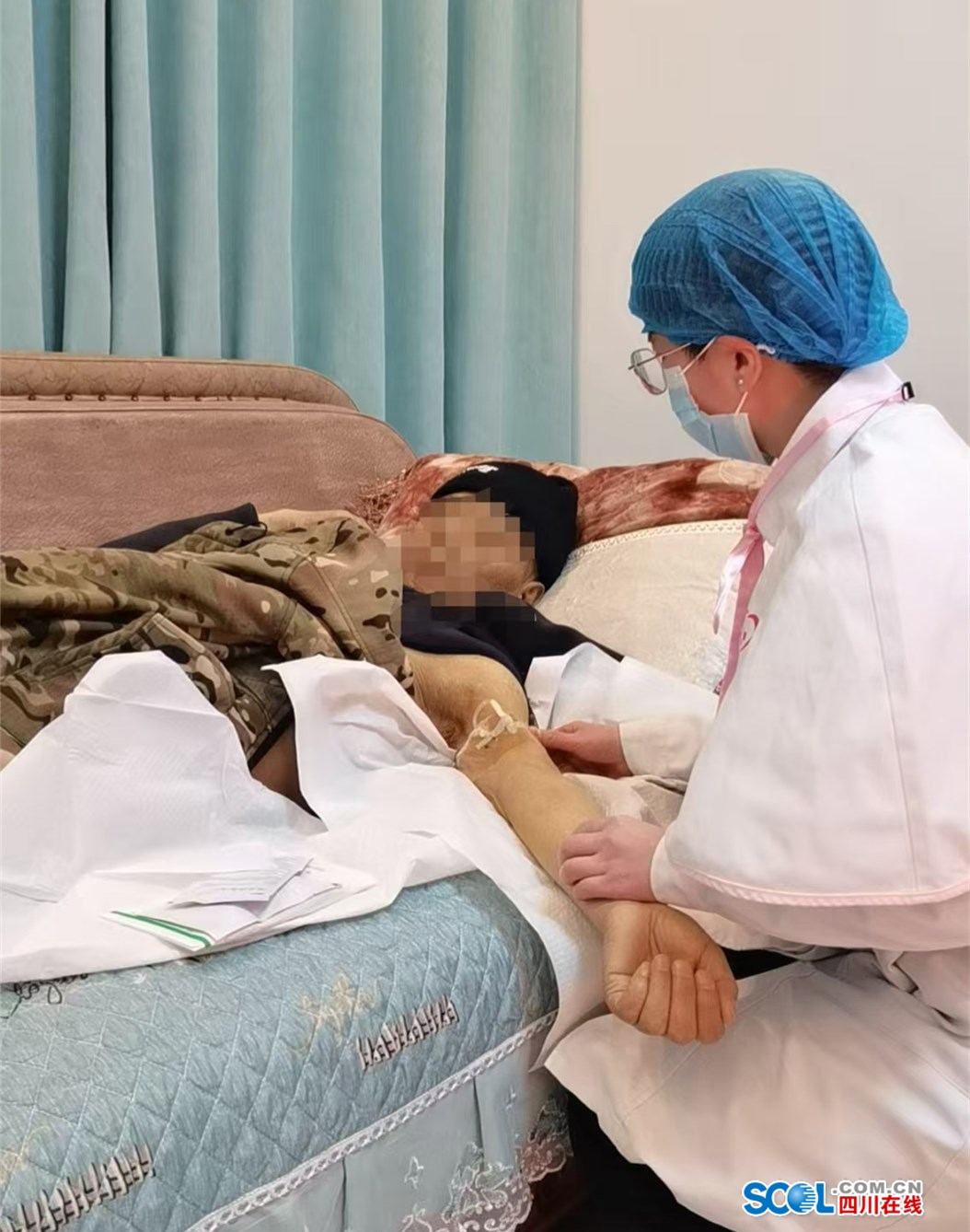 绵竹市人民医院护士上门为患者护理。绵竹市人民医院供图