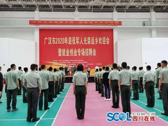 四川在线消息(孔继红 记者 薛伟光) 铁打的营盘流水的兵,又是一年退役季!9月15日,德阳广汉市2020年退役军人光荣返乡欢迎会在四川航天职业技术学院隆重举行,现已返乡的120余名退役军人参加欢迎会,并逐一佩戴上光荣返乡大红花,立志要永葆军人本色,为家乡的建设贡献力量。