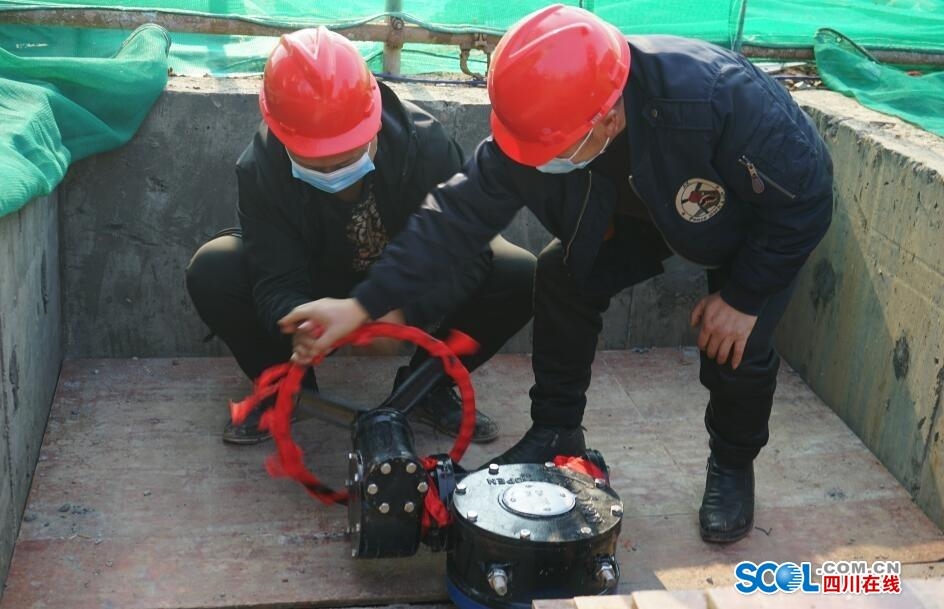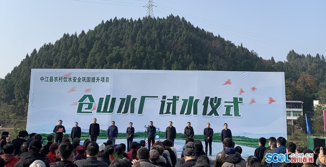 四川在线德阳消息(余如波 顾朝辉)工作人员转动阀门,伴随着“哗哗”的水声,来自12公里外元兴水库的水注入近10米高的配水井,几分钟内水面便接近井口——12月21日下午,中江县仓山水厂通水仪式在德阳市中江县仓山镇举行。