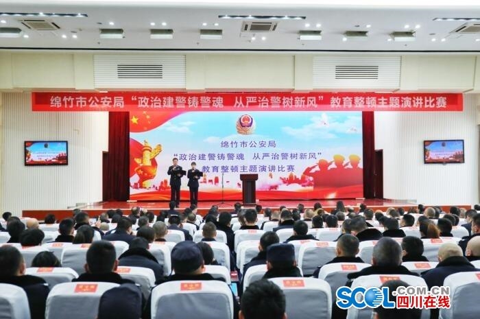 四川在线德阳消息 1月5日下午,绵竹市公安局举行了“政治建警铸警魂 从严治警树新风”教育整顿主题演讲比赛。绵竹市副市长、公安局局长黄和川观看了比赛。