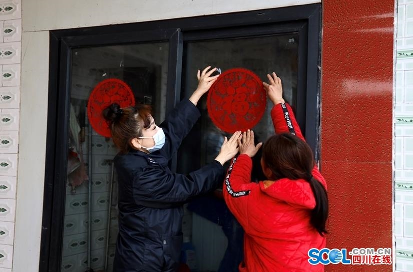 “大娘,贴上福字,福就到啦!祝您新的一年身体健康,万事如意,今后的日子越来越红火!”什邡税务帮扶干部钟珂开心地说道。