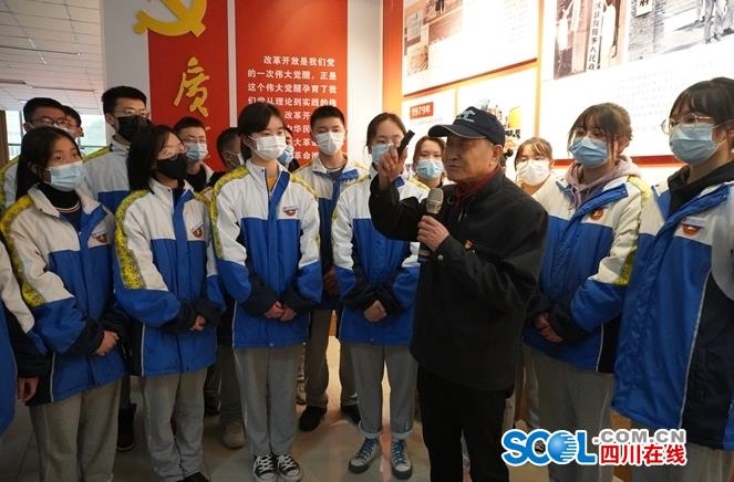 随后,学生代表们进入党史馆聆听现场教学,在宣讲员带领讲解下,学习了解百年来的广汉党史。其中,特邀宣讲员、广汉市委原书记、市关工委名誉主任叶文志结合自身工作经历,通过回顾重大历史事件、历数广汉改革成绩的方式,为学生们深情讲述了广汉改革开放以来的改革史。在场学生们深受鼓舞和感动:“老党员、老干部们的奋斗历史和取得的成绩是我们成长前进的动力,一定要发扬和继承好先辈的红色基因、光荣传统,认真学习好科学文化知识,报效祖国、服务人民。”