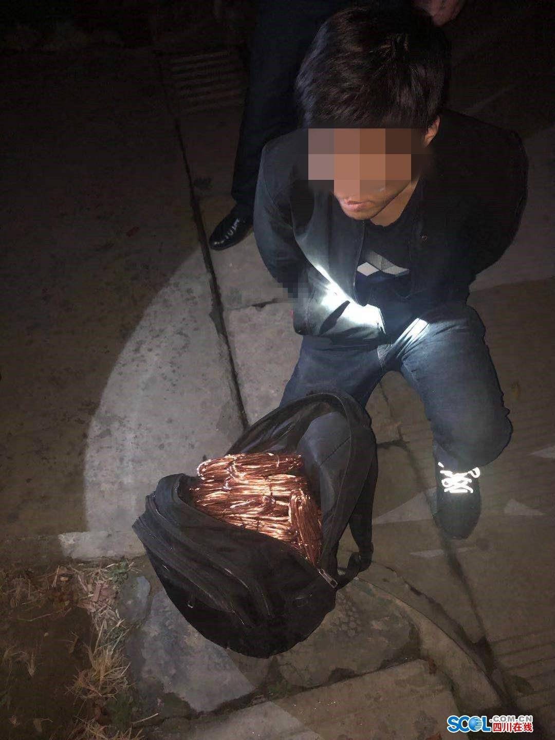四川在线消息(记者 古蓉媛)近日凌晨,广汉市经济开发区派出所民警带领群防队在小区蹲守巡查时发现一名年轻男子背一背包在小区道路的树阴下行走,形迹可疑,立即将男子拦下进行盘查,现场从该男子背包中查获大量的电缆铜芯线,民警将该男子依法带回派出所作进一步调查。