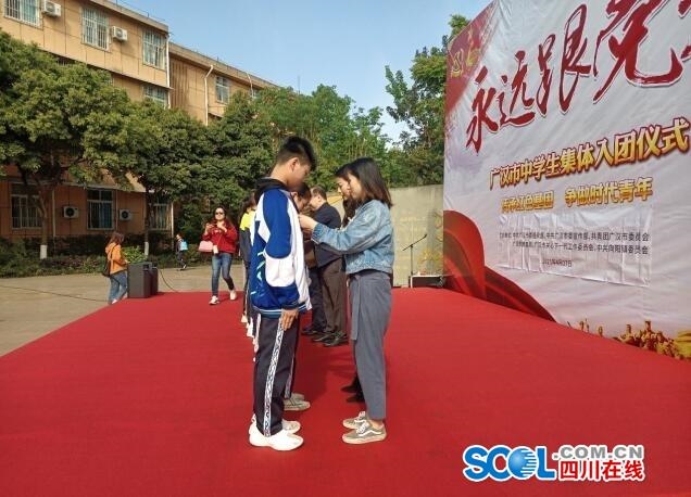 四川在线消息(孔继红 记者 薛伟光)“我志愿加入中国共产主义青年团,坚决拥护中国共产党的领导……”4月27日上午,在德阳广汉市“改革第一乡”向阳镇的幸福广场上传来整齐洪亮的声音,“永远跟党走·广汉市中学生集体入团仪式”在这里隆重举行。