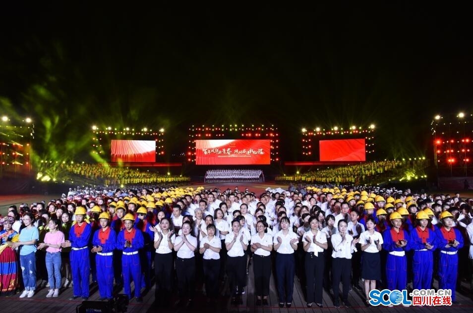 四川在线消息(德阳频道 古蓉媛)6月30日晚,以“百年风华正青春 砥砺奋进新征程”为主题的德阳市旌阳区庆祝建党100周年大型群众性文化活动在市区金螺湾生态公园水榭舞台举行。来自全区各行各业的党员干部群众欢聚一堂,热情讴歌党的百年光辉历程和丰功伟绩,抒发对党的无限忠诚和热爱,共同祝愿伟大的党永葆青春,祝福伟大的祖国繁荣昌盛。