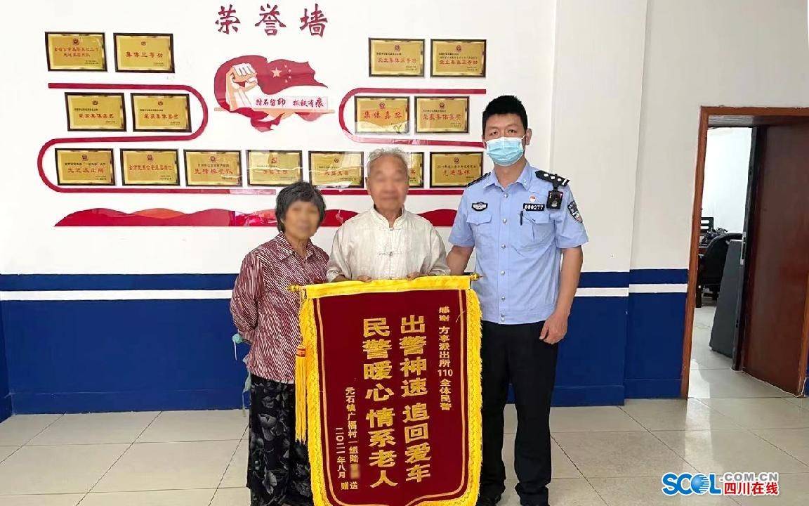 四川在线消息(张敦霜 德阳频道 古蓉媛)近日,年过八旬的老大爷和老伴走进什邡市方亭派出所将一幅“出警神速追回爱车、民警暖心情系老人”的锦旗送到民警手中,感谢民警帮忙找回买菜后“不见了”的老伴和电瓶车。