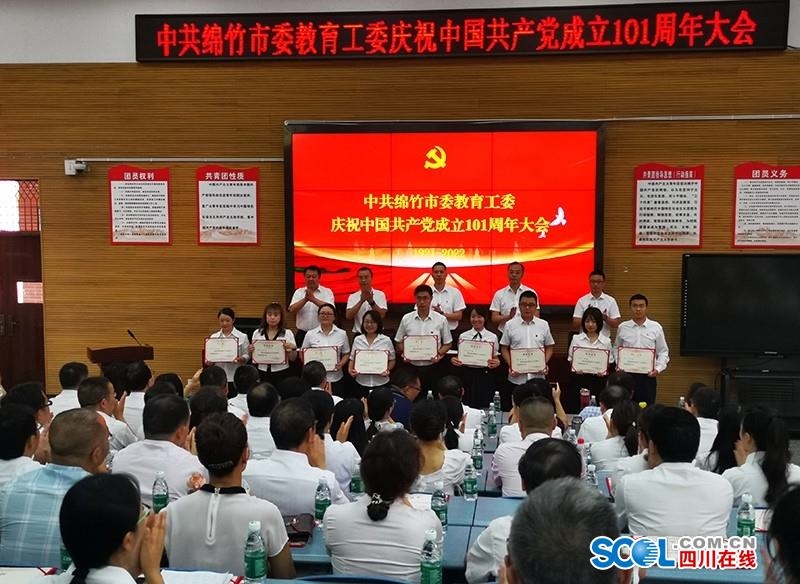 四川在线德阳消息 7月1日上午,绵竹市委教育工委召开庆祝中国共产党成立101周年大会和2022年第二季度中心组(扩大)理论学习会议。会议对教育系统优秀共产党员代表和先进集体颁奖。
