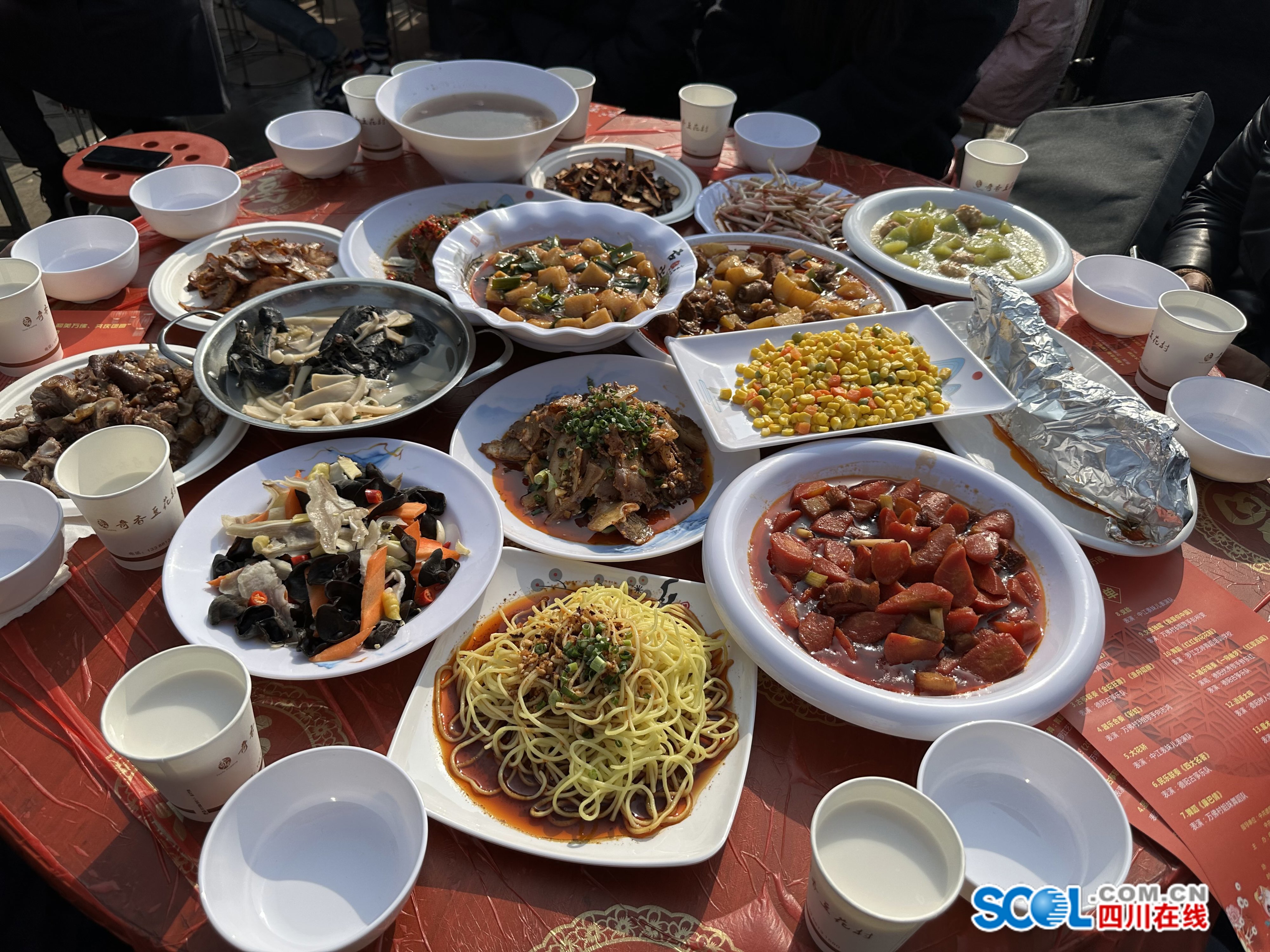 四川在线消息(德阳频道 古蓉媛)品年味,看表演,耍闹热……1月18日农历腊月十九,在德阳市罗江区白马关镇万佛村共富农事服务中心广场上,一场以“德邻一家亲美好零距离”——万佛村邀您回家吃团圆饭为主题的千人坝坝宴热闹开席,220桌宴席坐得满满当当。