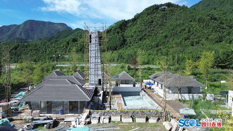 四川在线德阳消息 文旅项目建设是推动文旅产业高质量发展的基石。日前,在绵竹市清平镇雪野川羌汉聚落度假区项目建设现场,主体工程已经完工,工人们正在粉刷外墙、贴装地面、打扫卫生,做着最后的收尾工作。
