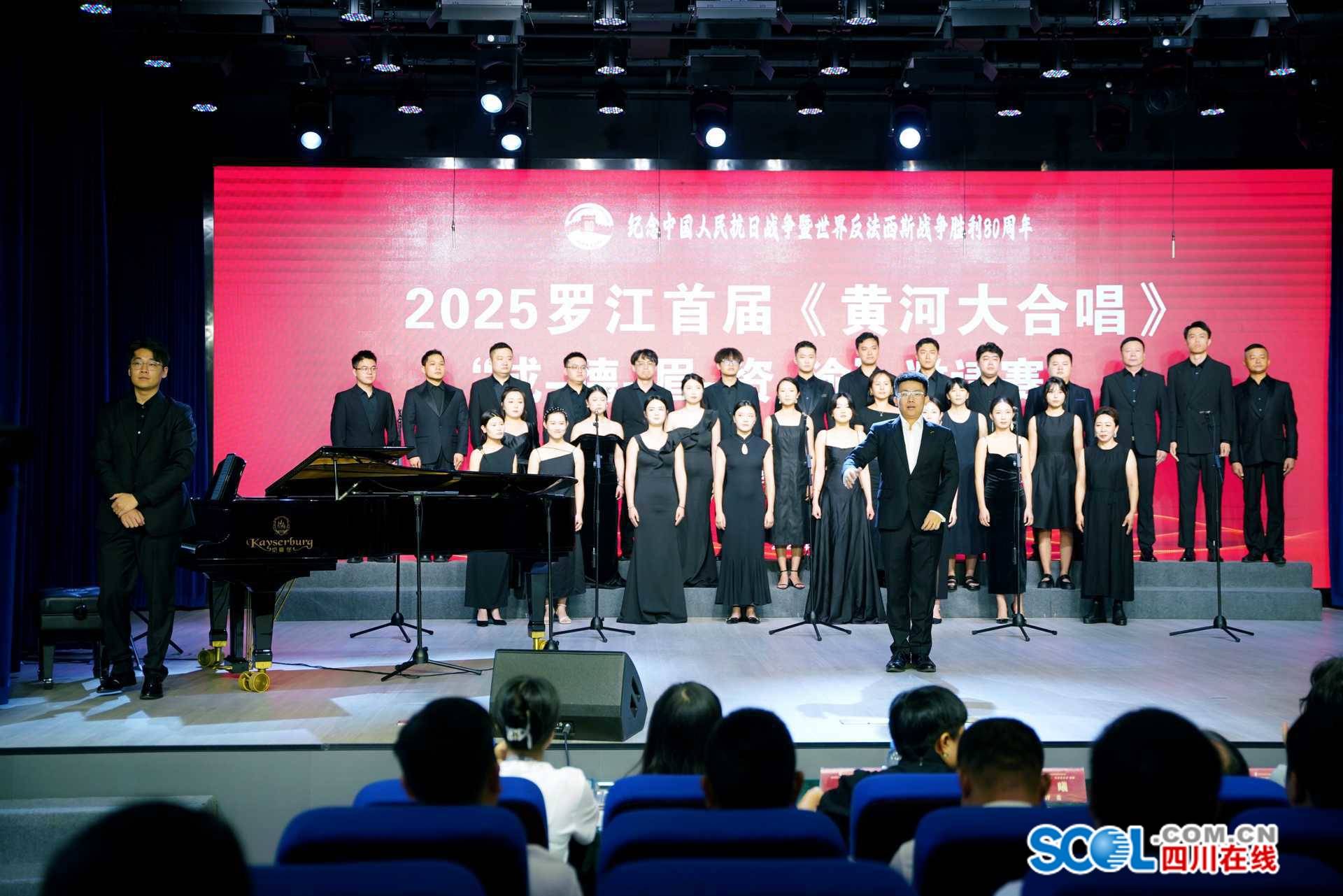 本次活动由中共德阳市罗江区委、区政府主办,区委宣传部、区文广旅局、区退役军人事务局承办。比赛现场,罗江中学大礼堂座无虚席,10支合唱团依次登场。什邡市章洛之声合唱团以《黄河颂》展现“黄河之水天上来”的豪迈,资阳市声浪合唱团用《保卫黄河》再现“万马奔腾抗敌寇”的激昂,重庆市观音桥合唱团则以《黄水谣》倾诉山河破碎的痛与不屈……各团队在10分钟限定时间内,从《黄河大合唱》经典篇章中精选曲目,用和声交织出民族危亡时的呐喊与奋进。