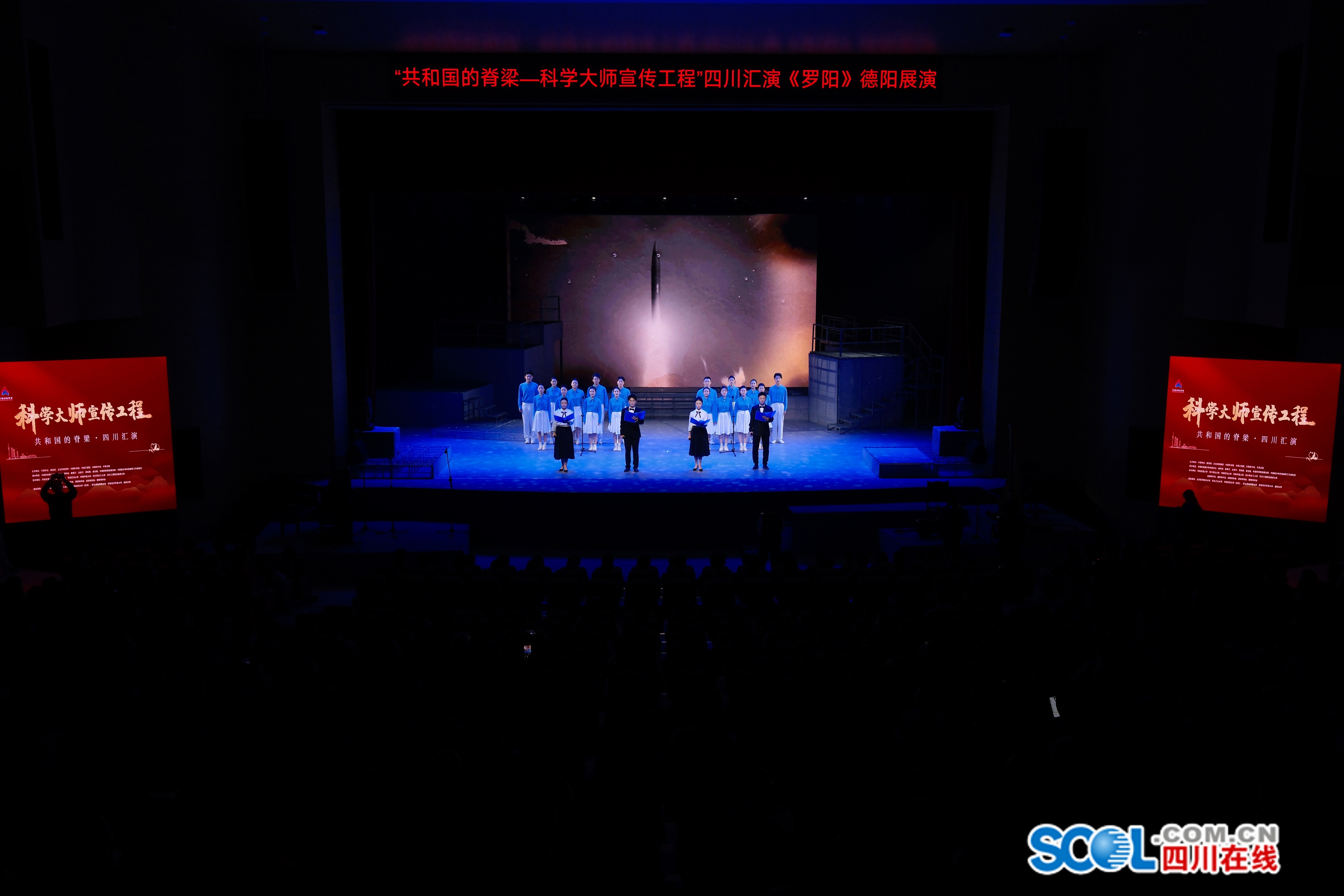 四川在线消息(德阳频道 周玉琴)10月11日晚七点,四川工程职业技术大学鼎新楼报告厅内座无虚席。“共和国的脊梁——科学大师宣传工程”四川汇演德阳专场在此启幕,由北京航空航天大学师生倾力打造的音乐剧《罗阳》深情上演,以艺术的形式再现了一位航空英模的赤子之心。