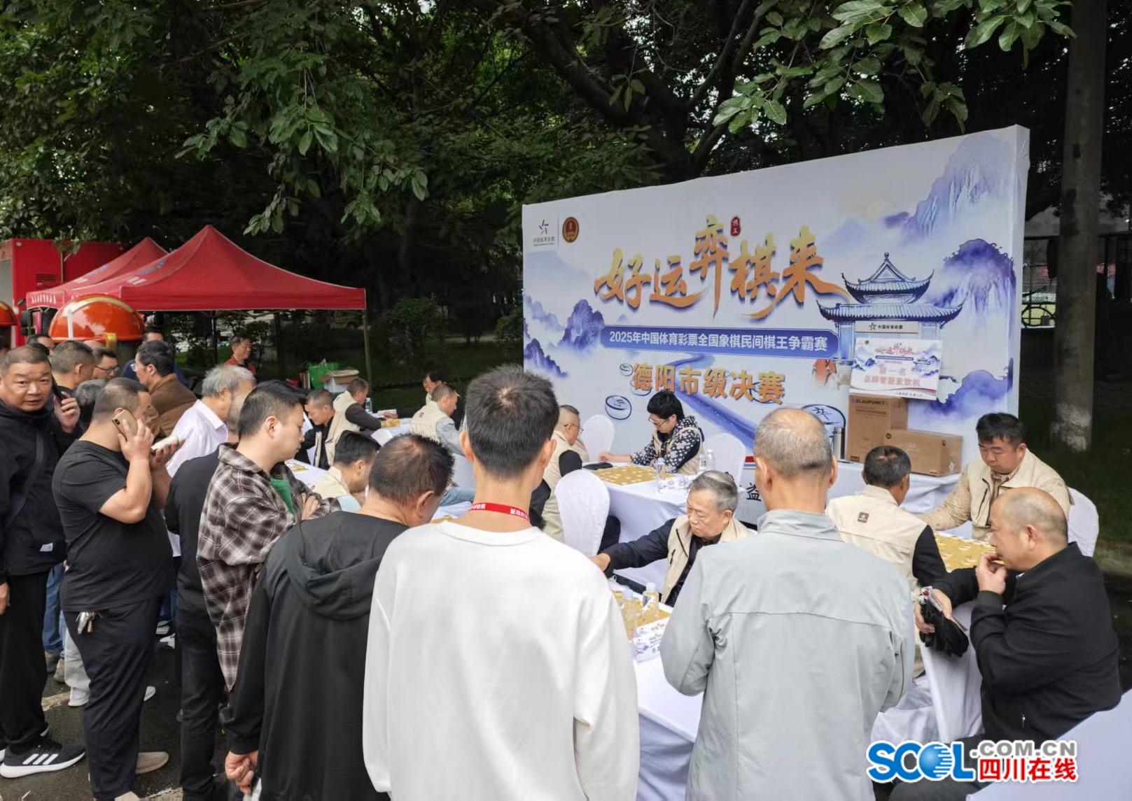 四川在线德阳消息10月12日,2025年中国体育彩票“好运‘弈棋’来”全国象棋民间棋王争霸赛德阳市级决赛,在德阳市体育公园“川超”赛场外隆重举行,来自德阳各个区(市)县的16位象棋高手齐聚一堂,展开智慧与耐心的较量。