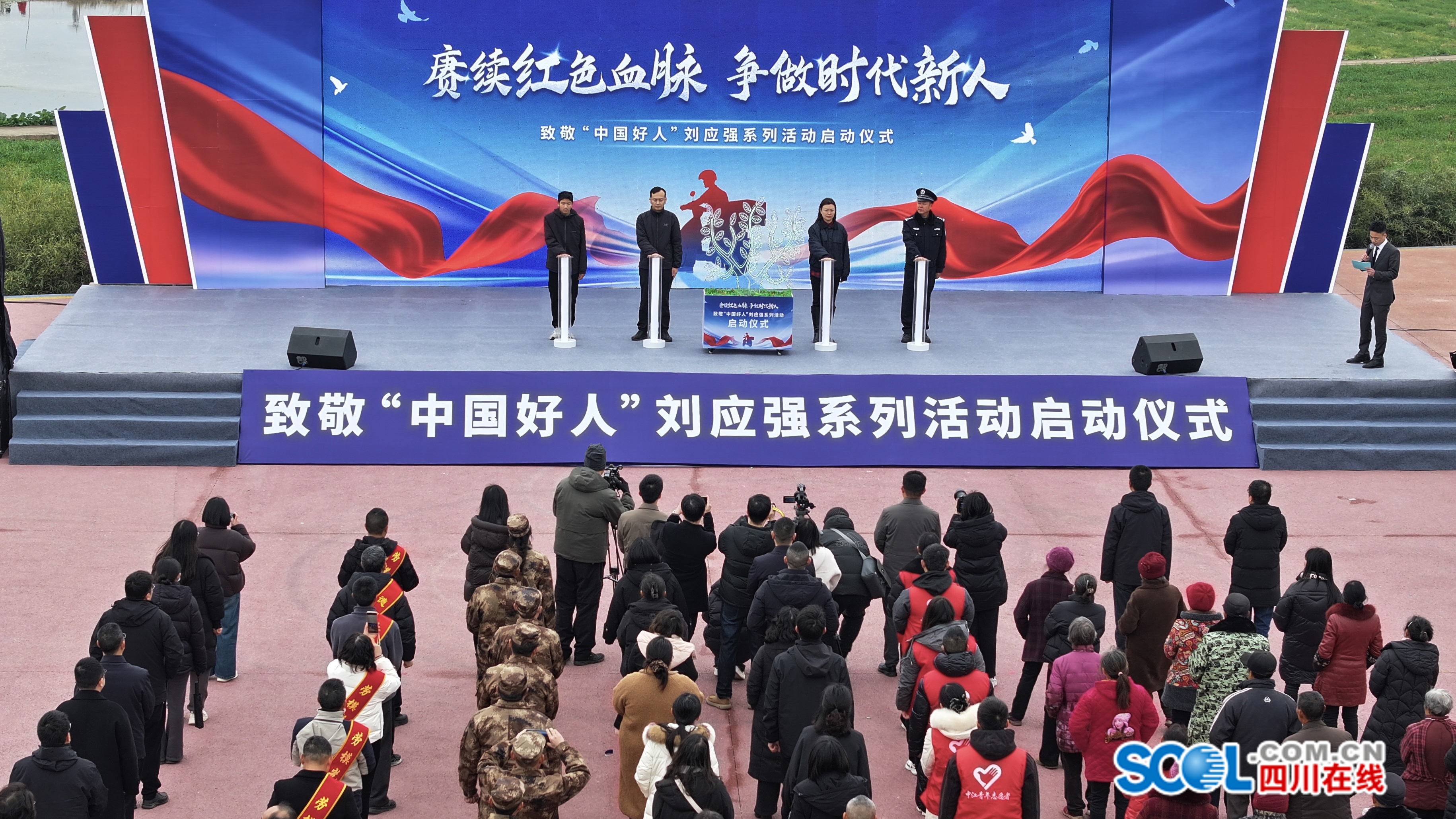 四川在线消息(肖开丰 张力 德阳频道 唐茜)1月29日,致敬“中国好人”刘应强系列活动启动仪式在中江县黄鹿镇举行。青年志愿者、退役军人、学生等各界代表300余人参加活动,共同缅怀英雄事迹,弘扬见义勇为精神。