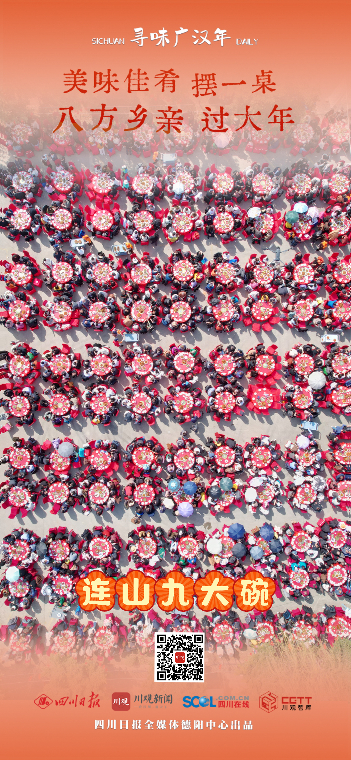 四川在线消息(德阳频道 周玉琴 唐茜)2月25日,农历正月初九,广汉市连山镇沙田村一年一度的民俗盛事“九大碗”热闹开席。红堰广场和九大碗广场上,160多张圆桌依次排开,一盘盘热气腾腾的九大碗端上桌,软糯的甜烧白、肥而不腻的连山回锅肉……大家围坐一起,吃着九大碗,聊着家常,欢声笑语间满是团圆的暖意,这大概就是最接地气的年味。