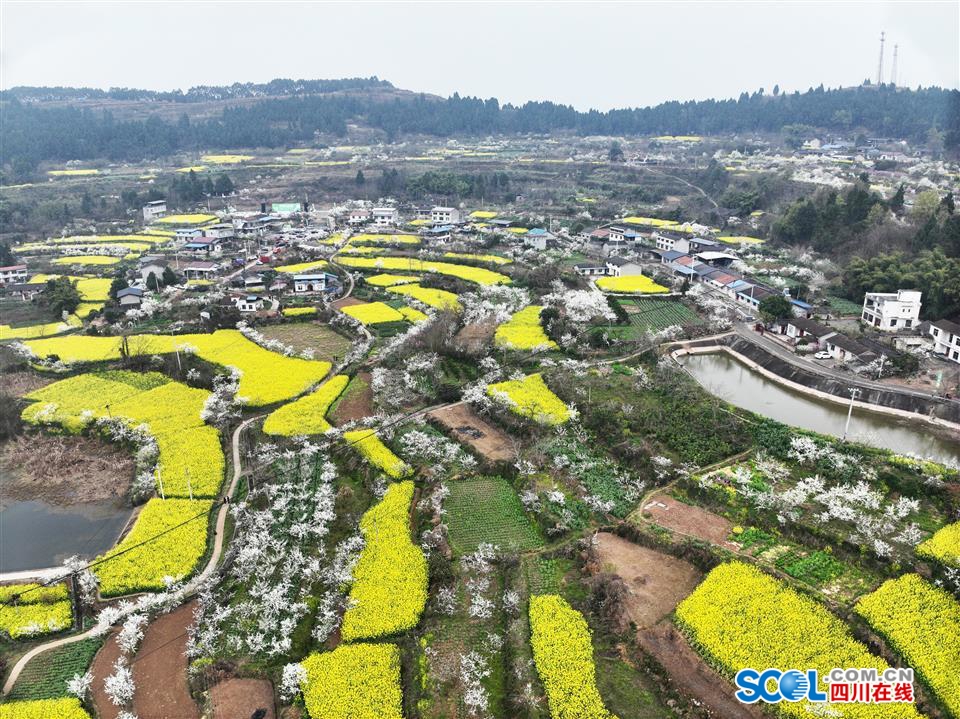 步入双东镇金锣桥村,李花漫山如雪,油菜花铺展成金色画卷,桃花、杏花竞相绽放,绘就出春日田园盛景,引得游客纷纷驻足打卡。