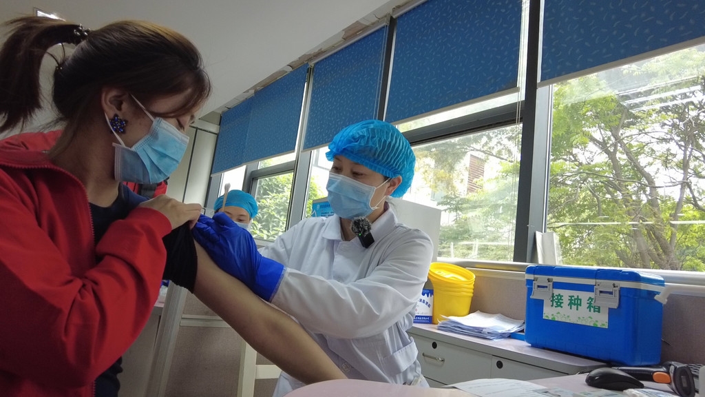 在留观区域,话痨川观妹忍不住和几位接种后的市民摆起龙门阵,留观区设在卫生服务中心的一处庭院,大家分坐在花园的各处,如果再来点儿“烘烘儿太阳烤起”竟然还有几分休闲。刘女士和川观妹一样比较怕痛,“打这个疫苗之前我以为会比较痛,但其实还好。接种疫苗是保护自己也是保护其他人,回家以后我会鼓励家里人也尽早预约接种疫苗。”