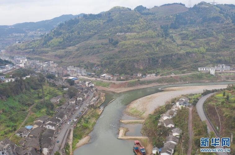 这是3月10日拍摄的赤水河太平渡口一角(无人机照片)。新华社记者 胥冰洁 摄