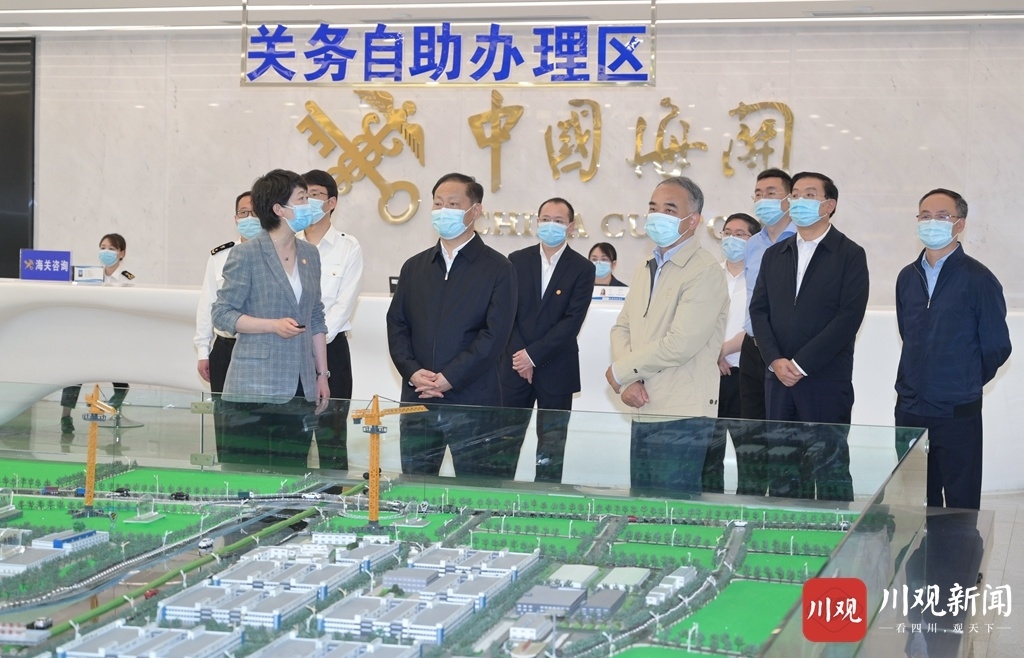 调研中,彭清华来到成都高新综合保税区B区自助服务大厅,与工作人员和办理业务的企业人员亲切交谈,详细了解综保区建设布局、企业招引、业务办理、服务保障机制创新及成都市开放口岸建设情况。