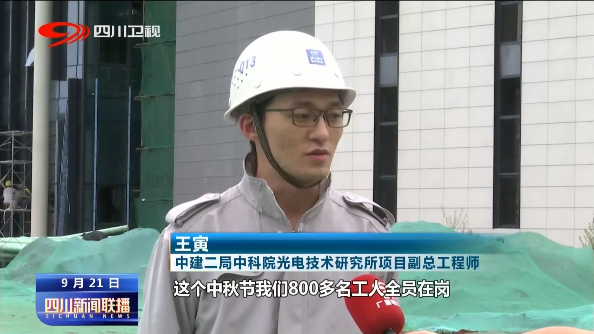 中建二局中科院光电技术研究所项目副总工程师 王寅:为了确保工程年底交付使用,这个中秋节我们800多名工人全员在岗,抢抓进度确保安全,保证如期完工。
