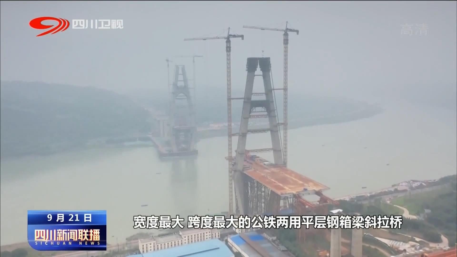 记者 敏捷:宜宾临港长江大桥是目前世界上宽度最大、跨度最大的公铁两用同层钢箱梁斜拉桥。那么现在我所在的这个施工区域一共有33节这样的钢箱梁,目前工人已经焊接了20节钢箱梁。