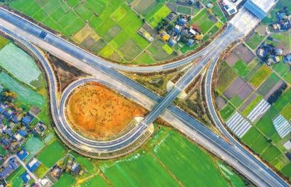 俯瞰成都“三绕”德阳至都江堰高速公路什邡段。 程聪 摄(视觉四川)