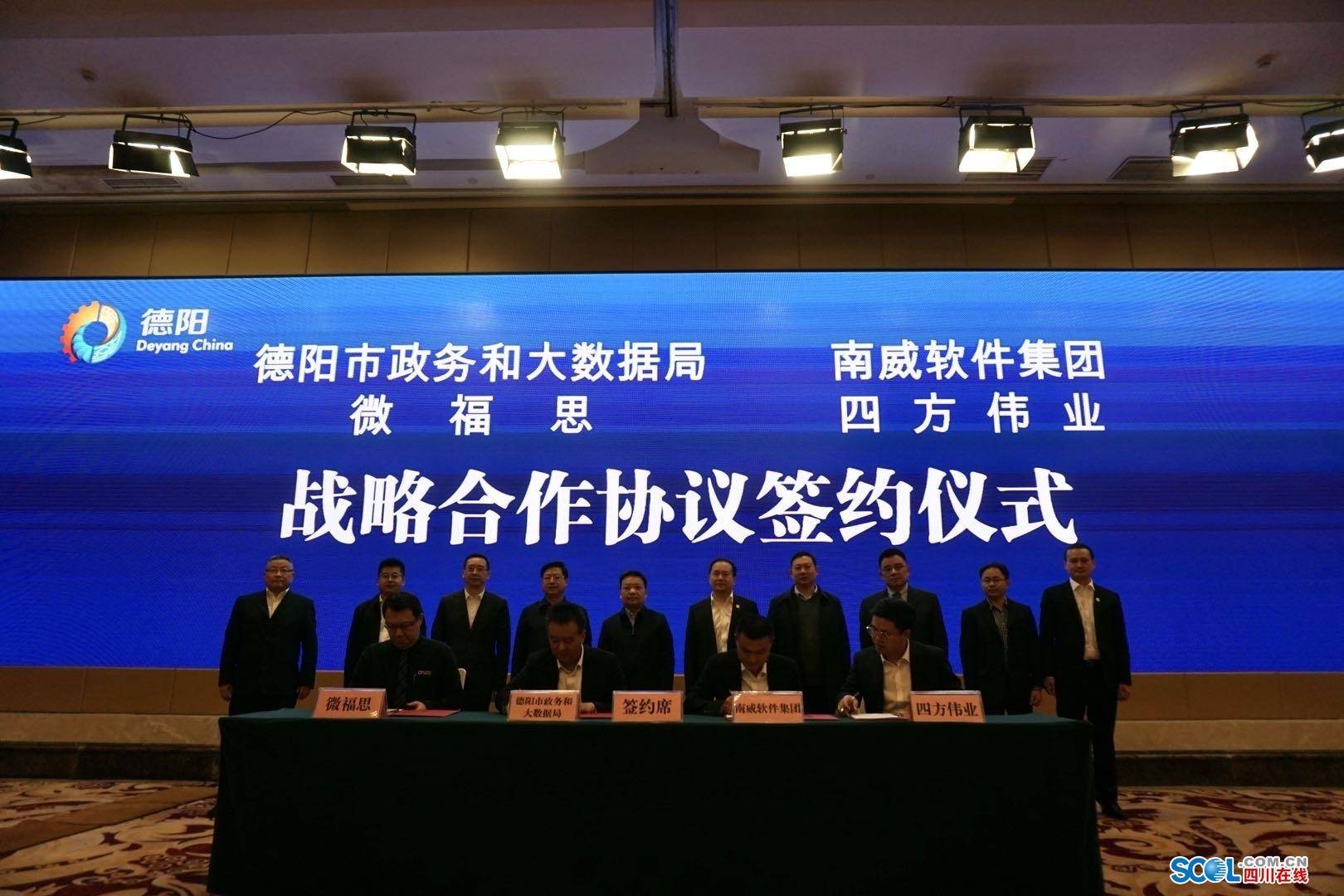 四川在线消息(记者 古蓉媛)11月4日下午,德阳市政务服务和大数据管理局与南威软件集团、微福思、四方伟业签署战略合作协议。协议表明,德阳将与南威软件集团、Micro Focus(微福思)共建“西部软件评测中心”。项目建成后,将为德阳、四川、西部及中国大陆地区的相关用户提供软件性能测试、信息安全、大数据等相应服务。四方伟业将在德阳投资5亿元,成立四方伟业德阳子公司、建设人工智能联合实验室和开发智慧城市应用。