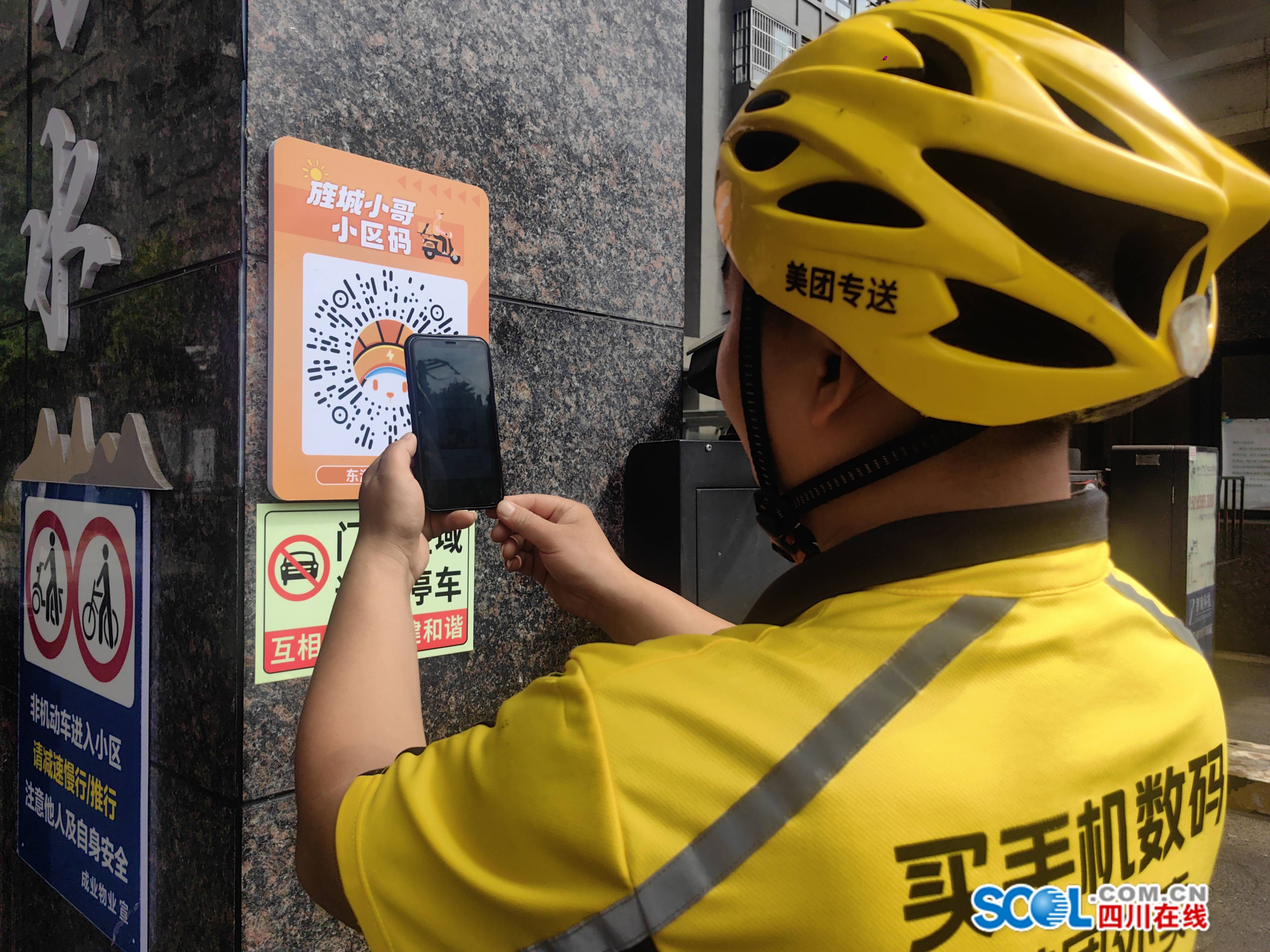 外卖员进小区扫描“旌城小哥小区码”。周玉琴 摄
