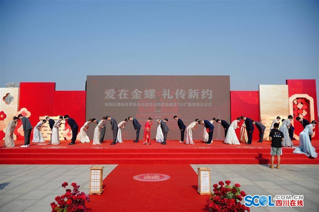 四川在线消息(姜强 德阳频道 古蓉媛)5月20日上午,“爱在金螺•礼传新约”德阳市旌阳区婚俗改革新风尚宣传活动暨金螺湾“520”集体婚礼仪式在金螺湾生态公园举行。当天,金螺湾生态公园婚姻登记处正式启用。