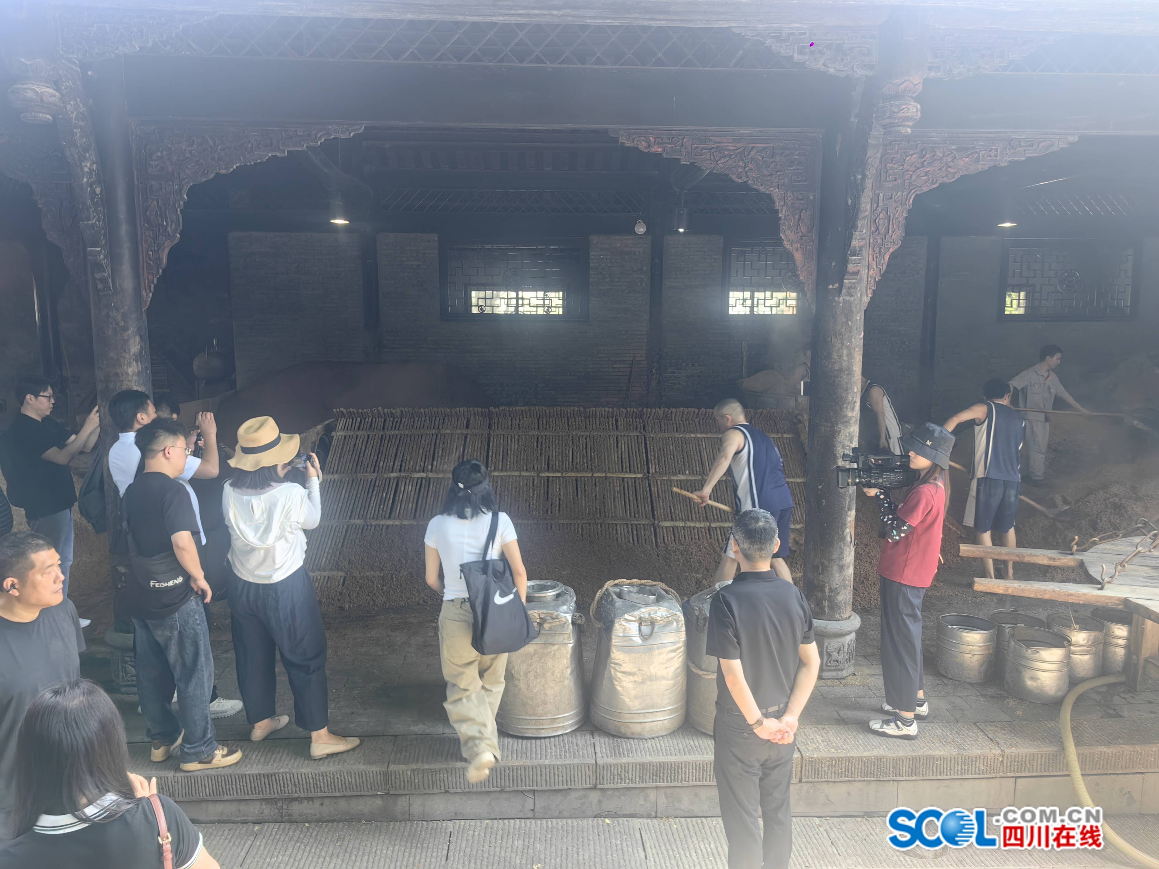 媒体记者参观“天益老号”传统酿酒工艺。周玉琴 摄