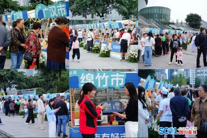 活动现场,“今夜有好市”乡村文旅百业场景体验区同样人气十足。上千种“德阳好物”组团亮相。在这里非遗不再是“老古董”,而是兼具实用性与艺术性的时尚单品。罗江豆鸡、中江挂面……地道德阳味,一秒带你回到故乡的烟火气里。各区(市、县)新农人、网络达人更是走进直播间,热情推介家乡特产与非遗作品。