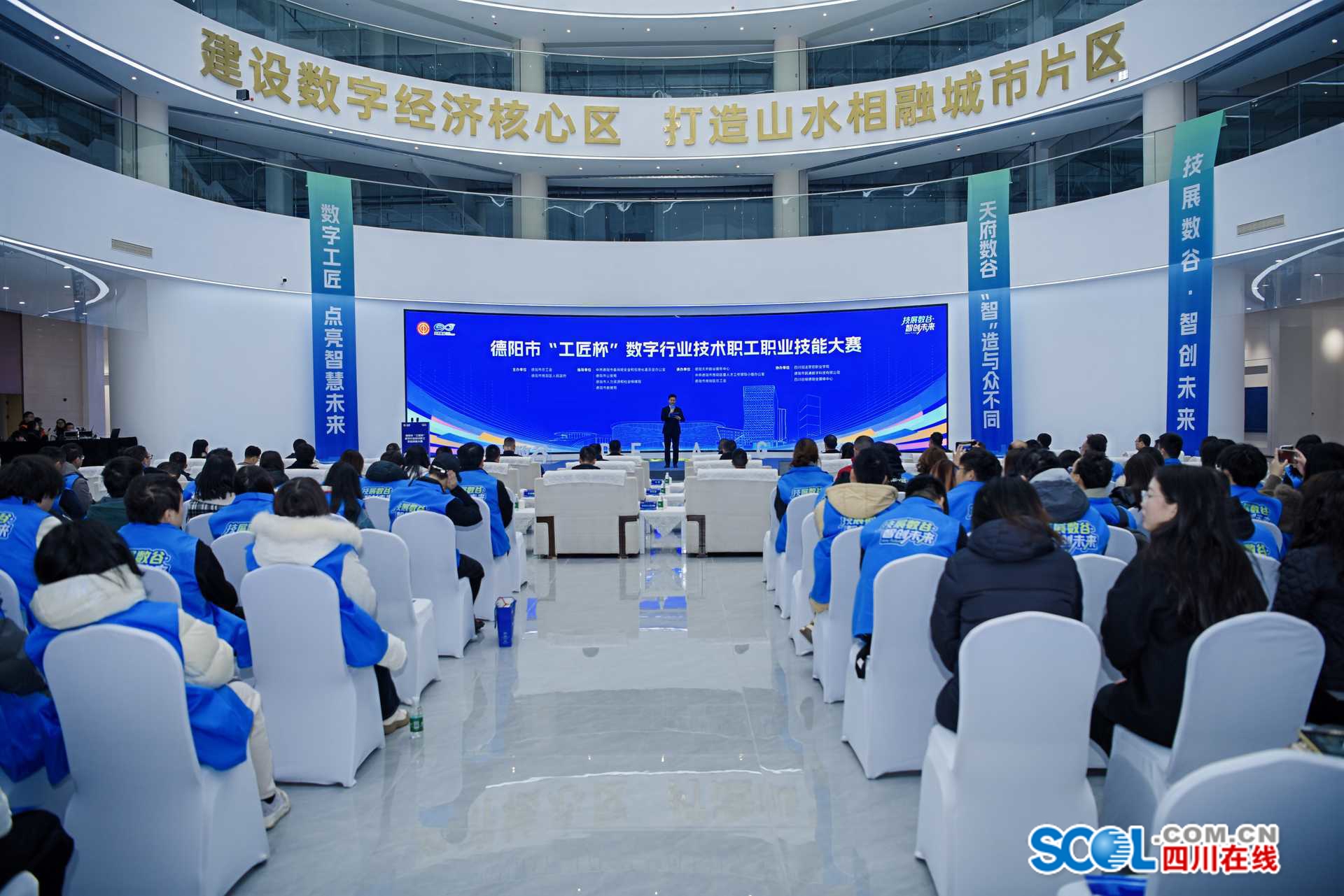 四川在线消息(德阳频道 周玉琴 唐茜)12月30日下午,德阳市“工匠杯”数字行业技术职工职业技能大赛在德阳天府数谷“智慧之心”拉开帷幕。大赛以“技展数谷智创未来”为主题,由德阳市总工会、德阳市旌阳区人民政府联合主办,德阳天府数谷服务中心等单位共同承办,旨在弘扬劳模精神、劳动精神、工匠精神,为德阳数字经济高质量发展选拔和储备高素质技能人才。