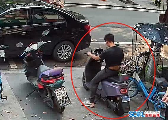 嫌疑人张某盗窃电动车现场监控画面(图片由德阳市公安局旌阳区分局提供)