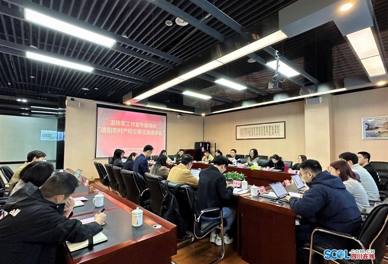 调研组分别与成都农交所德阳所、“三书模式”创建团队及德阳市纪委监委机关、市委组织部、市发改委、市司法局、市财政局、市自然资源局、市水利局、市农业农村局、市乡村振兴局、市金融局等部门相关负责同志进行座谈,深入了解成都农交所德阳所设立背景、发展历史与现状、政府部门赋能等情况。