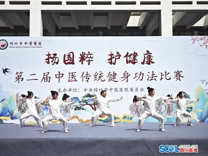 四川在线德阳消息 近日,绵竹市中医医院举行“扬国粹护健康”第二届中医传统健身功法比赛,来自该院的10支代表队50名选手参赛。比赛旨在大力弘扬传统中医药文化,进一步巩固“全国基层中医药工作示范县”创建成果。