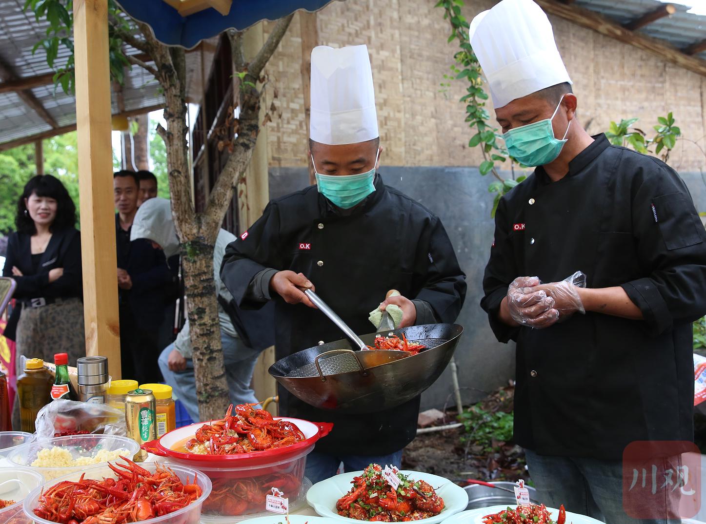 文艺表演之后,高坪镇的大厨们悉数登场,他们现场烹制出香辣、油焖、蒜蓉、十三香等多种风味独特的小龙虾,吸引了众多游客驻足观赏、品尝。小龙虾的鲜美与大厨们的精湛技艺相互映衬,使得现场氛围更加热烈,游客们纷纷赞不绝口。