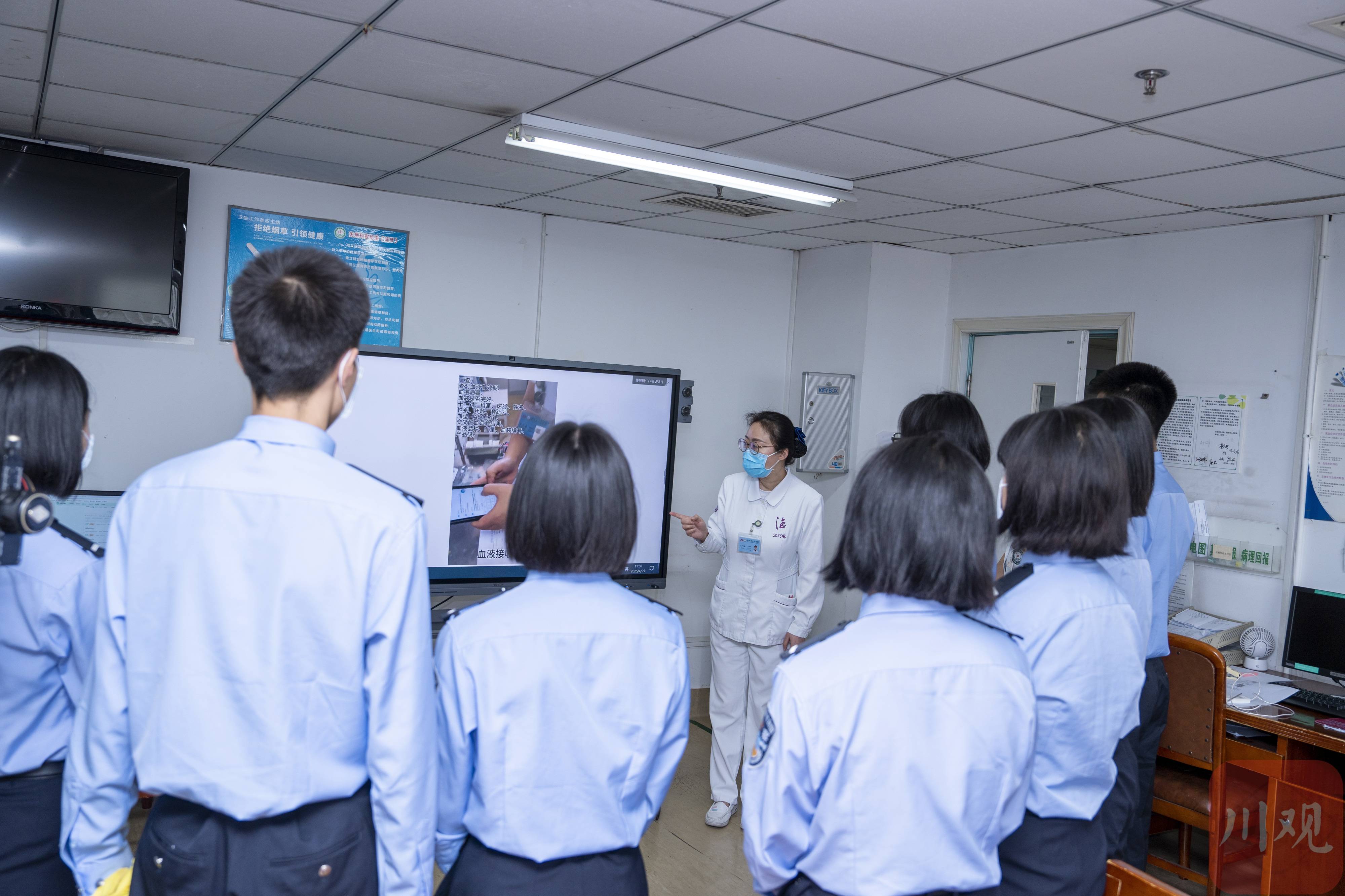 师生们在德阳市人民医院输血科了解科室运转情况。欧阳馨月 摄
