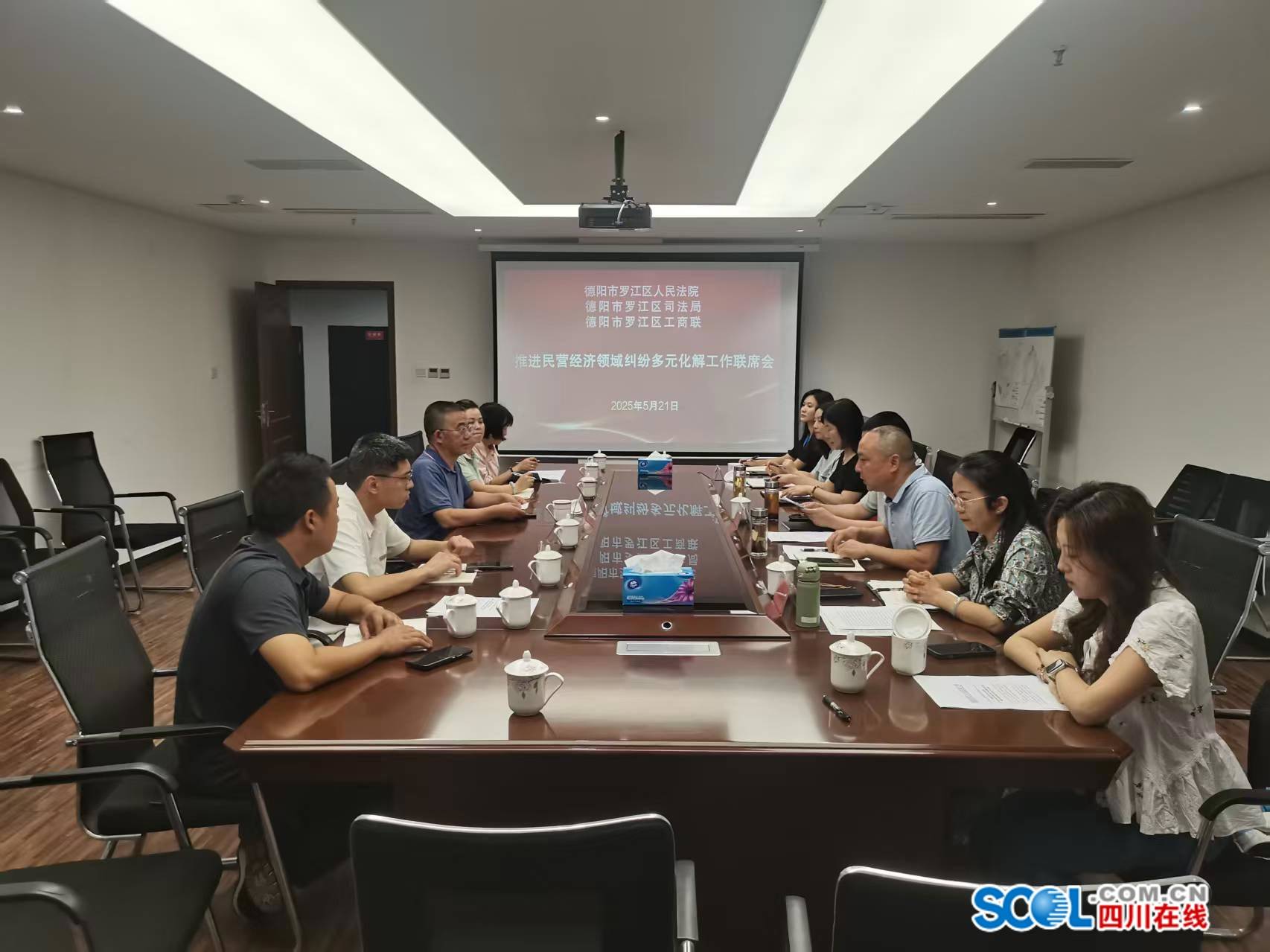 四川在线德阳消息 近日,德阳市罗江区人民法院联合区司法局、区工商联,召开了2025年第一次民营经济领域纠纷多元化解工作联席会暨“法护企航”行业商会座谈会。