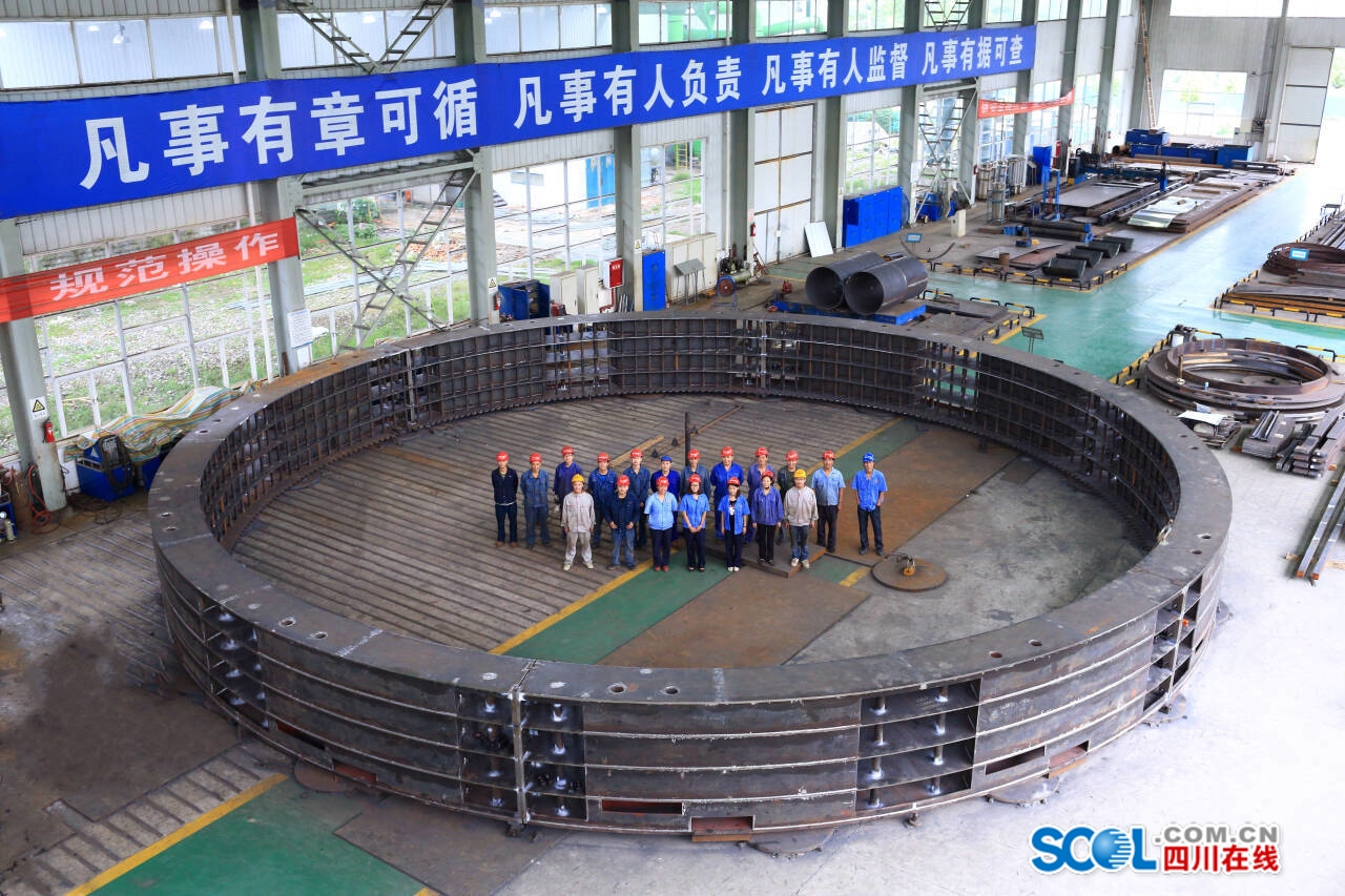 四川工程职业技术大学师生参与制作的“向家坝240MW水轮发电机定子机座” (受访者供图)