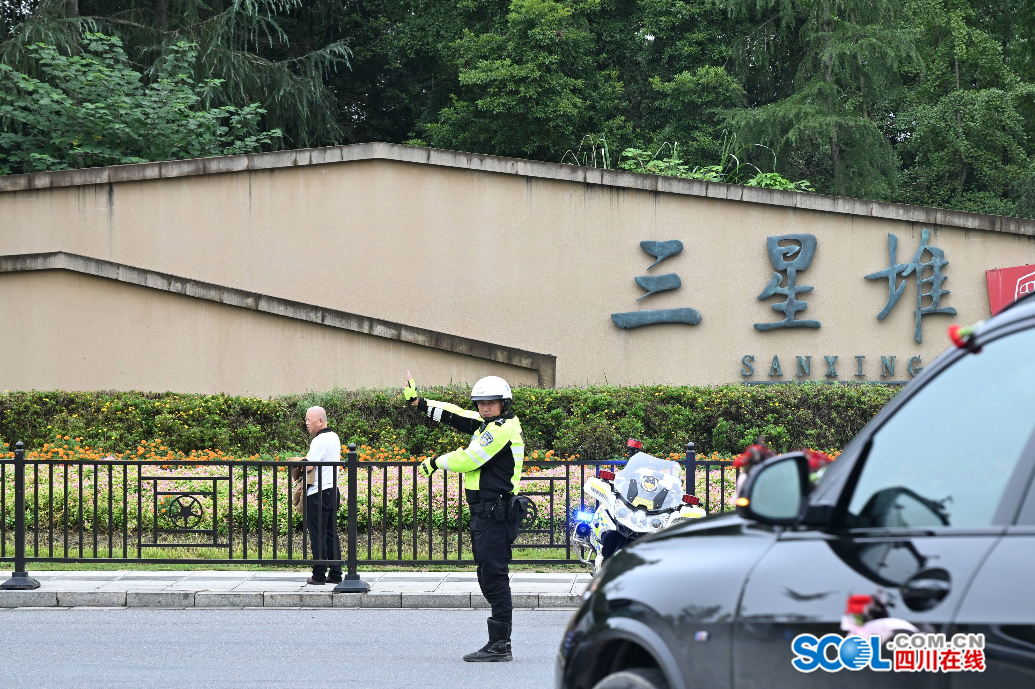 民警在三星堆博物馆外指挥交通 德阳市公安局供图