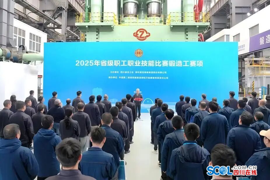 四川在线消息(德阳频道 古蓉媛) 为大力弘扬劳模精神、劳动精神、工匠精神,10月27日至28日,由四川省总工会与国机重装联合主办、中国二重万航模锻有限责任公司承办的2025年四川省职工职业技能比赛锻造工赛项,在国机重装德阳基地顺利举行。来自全省装备制造领域的35名精英选手同台竞技,传承工匠精神,以钢为墨、以锤为笔,在毫米级的精度把控中展现扎实功底与精湛技艺,生动诠释了新时代产业工人的专业素养与拼搏风采。