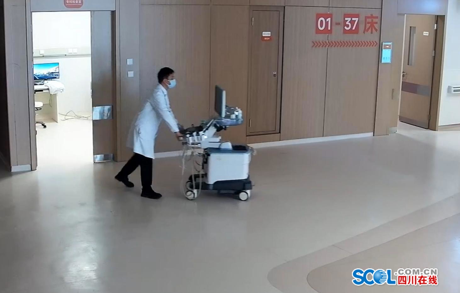 消化疾病中心超声检查室值班医生到床旁进行检查 德阳市人民医院供图