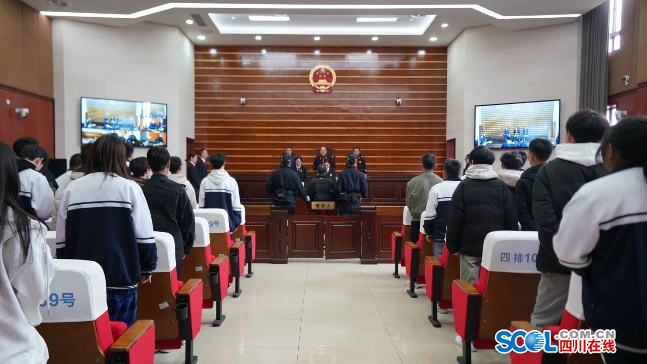 “现在开庭!”随着一声庄严的法槌声,一场特殊的“开学第一课”在旌阳区人民法院大法庭拉开帷幕。3月18日,德阳弘正科技职业学校的100余名学生在法治副校长廖燕萍的带领下,走进法庭,旁听一起聚众斗殴致人重伤涉嫌故意伤害罪案件的庭审。从法庭调查到举证质证,学生们屏息凝神,认真观摩庭审的每一个环节,近距离感受司法的庄严与神圣。庭审结束后,廖燕萍法官还结合刚刚审结的案件,现场开展以案释法,告诫学生们“冲动不是讲义气,打架没有真赢家。”