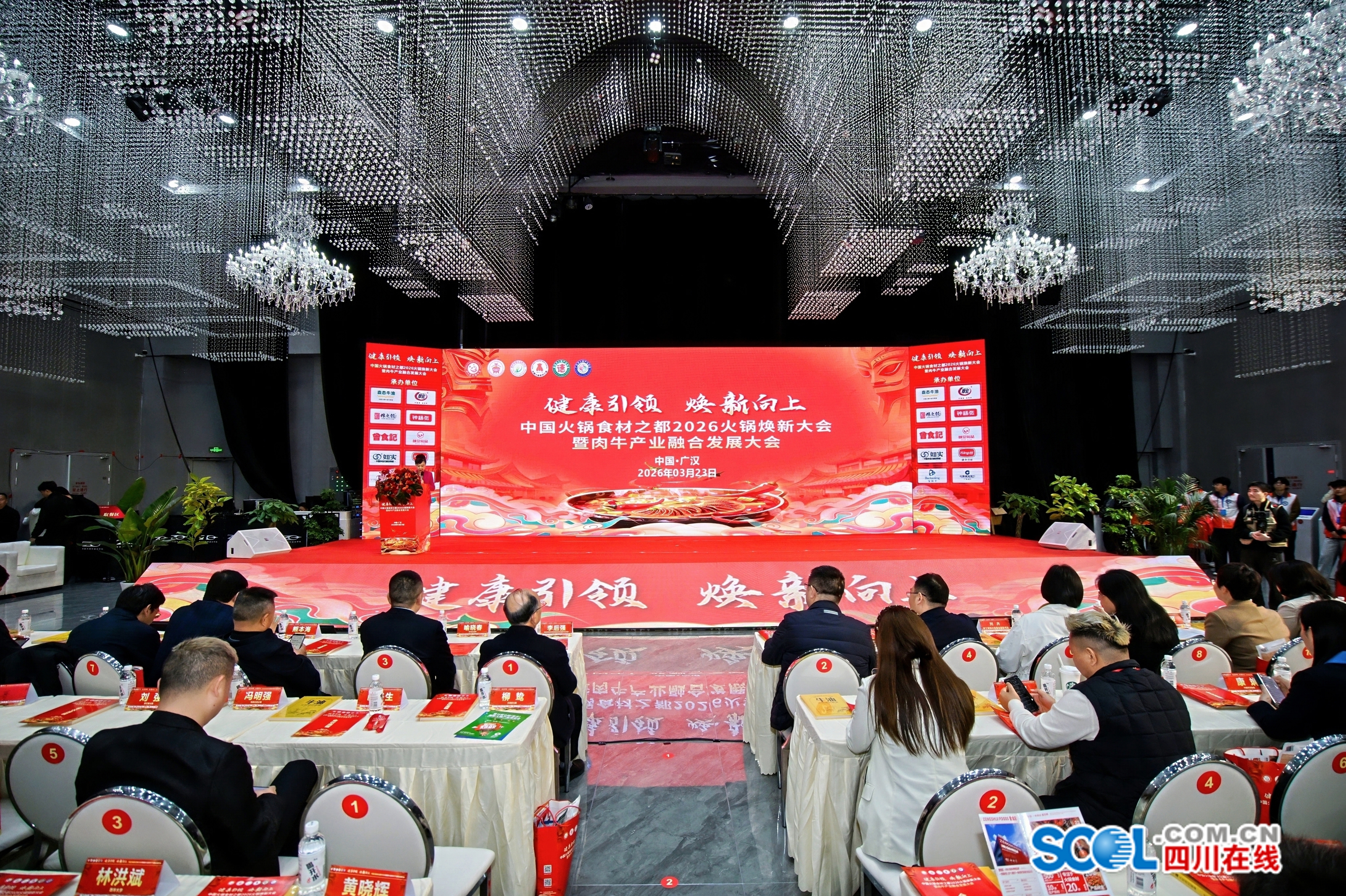 四川在线消息(德阳频道 周玉琴)3月23日,以“健康引领・焕新向上”为主题的2026火锅焕新大会暨肉牛产业融合发展大会,在四川德阳广汉市拉开帷幕。作为一场集政策解读、产业交流、资源对接、项目落地于一体的高端产业盛会,大会吸引全国火锅食材、肉牛产业领域的专家、商协会代表及企业代表等千余人齐聚,共话火锅食材产业焕新升级,共谋肉牛与火锅产业深度融合。
