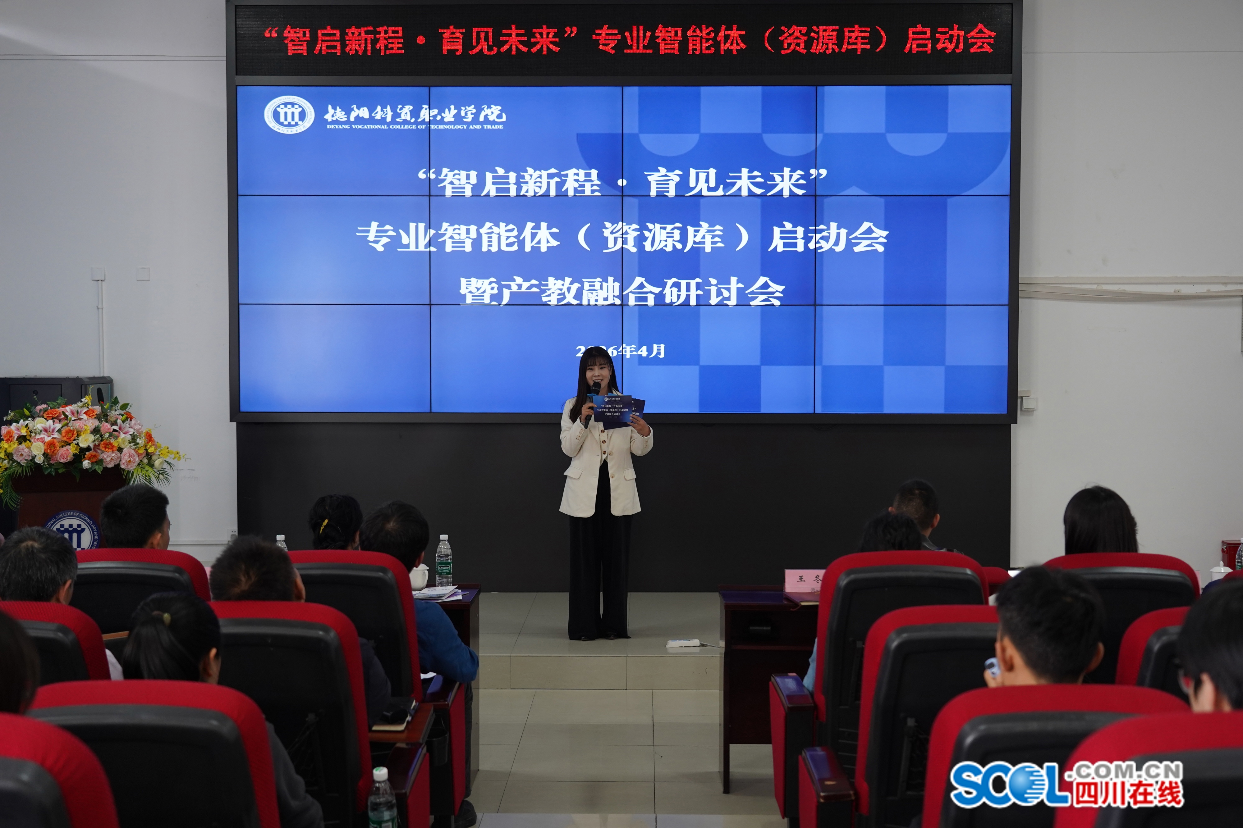 四川在线消息(罗琴 德阳频道 周玉琴)4月8日,德阳科贸职业学院“智启新程·育见未来”专业智能体(资源库)启动会暨产教融合研讨会举行。会上,学校专业智能体(资源库)正式上线,政府部门、行业企业及学校师生代表共同见证了该校在人工智能赋能职业教育领域的重要突破。