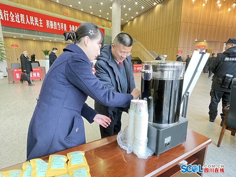 在“两会”现场,绵竹市中医医院设立了专门的服务台,为人大代表和政协委员免费发放熬制好的中药汤剂和冬季养生茶。这些汤剂包括感冒预防汤等,茶饮则有御寒温阳茶等。